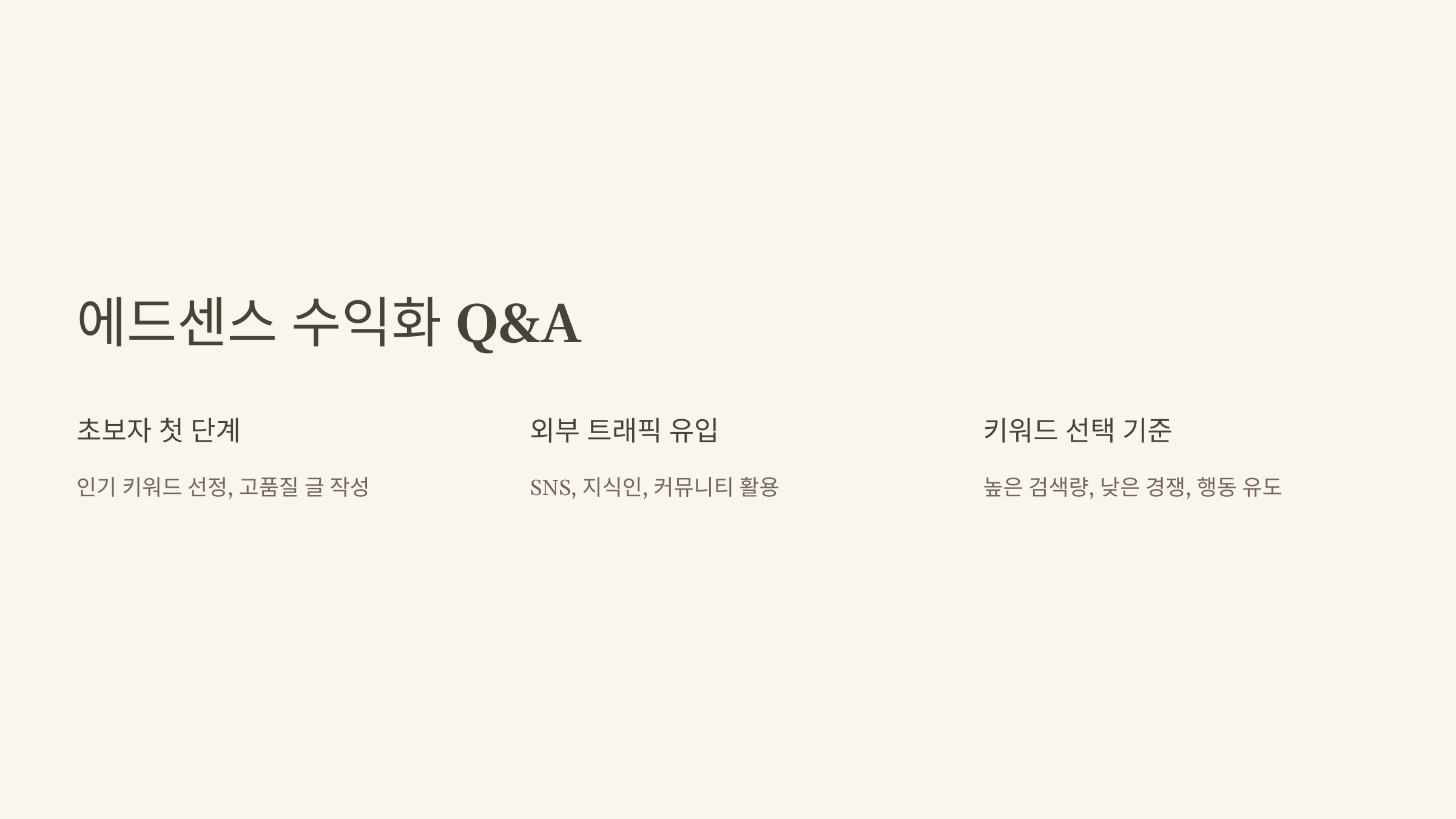 Q1: 에드센스 수익화 초보자가 가장 먼저 해야 할 일은?
