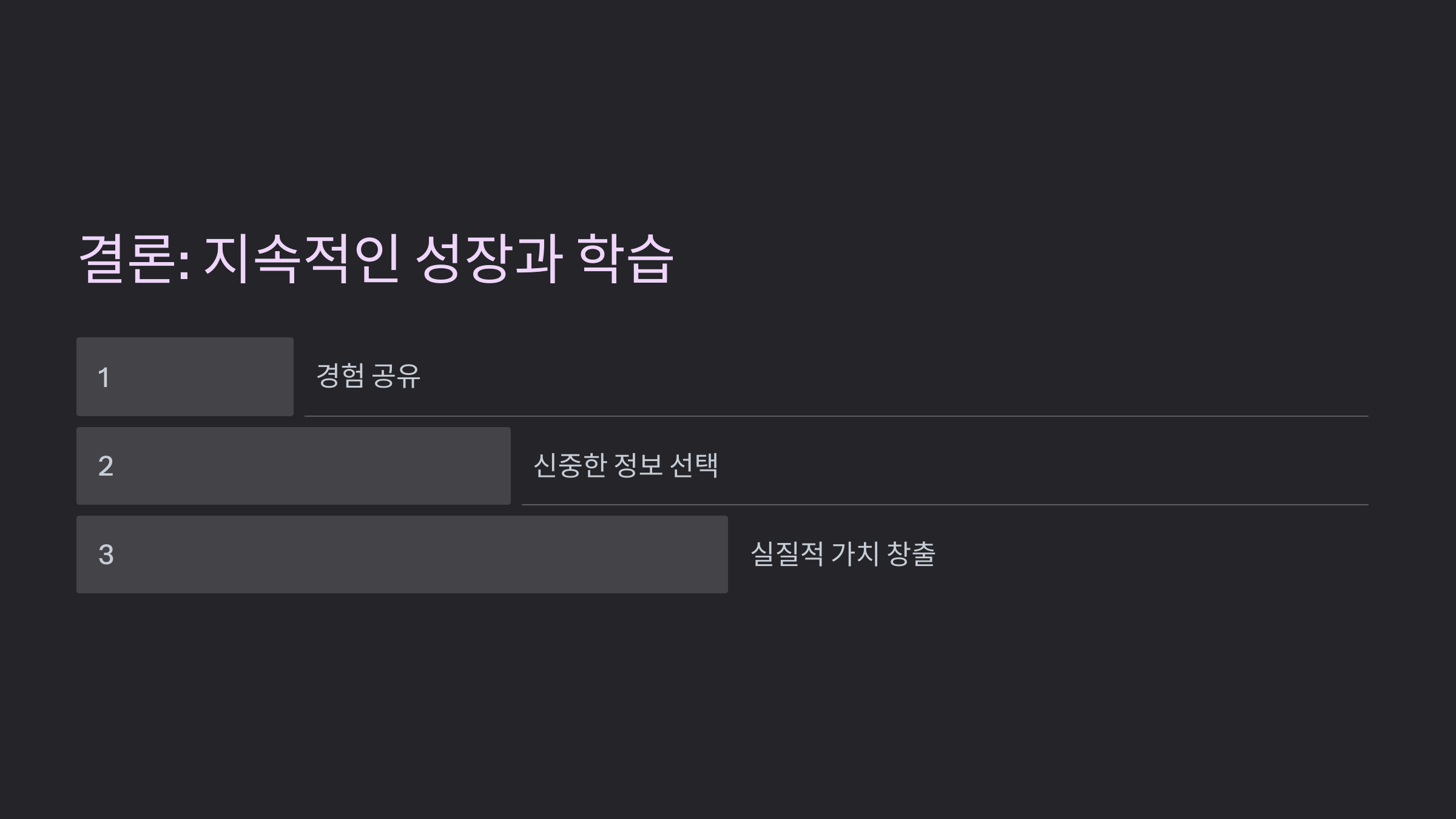 - 자신의 경험과 실행 결과를 바탕으로 지식을 공유하세요.