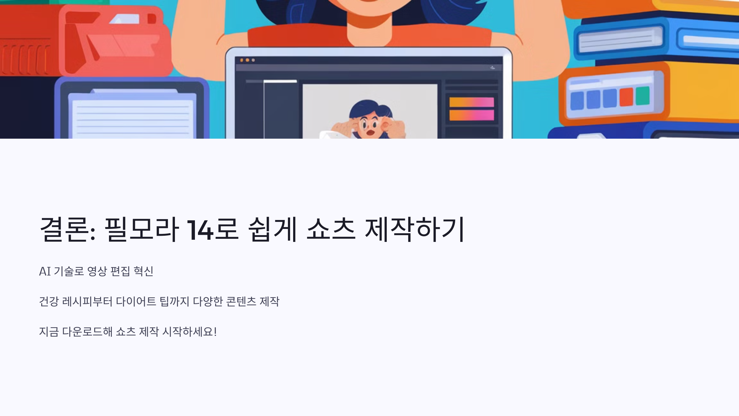AI 기술이 접목된 필모라 14는 영상 편집 초보자들에게 혁신적인 도구입니다. 건강 레시피 쇼츠부터 다이어트 팁까지, 누구나 쉽고 빠르게 콘텐츠를 제작할 수 있습니다. 지금 필모라를 다운로드해 쇼츠 제작을 시작해 보세요!