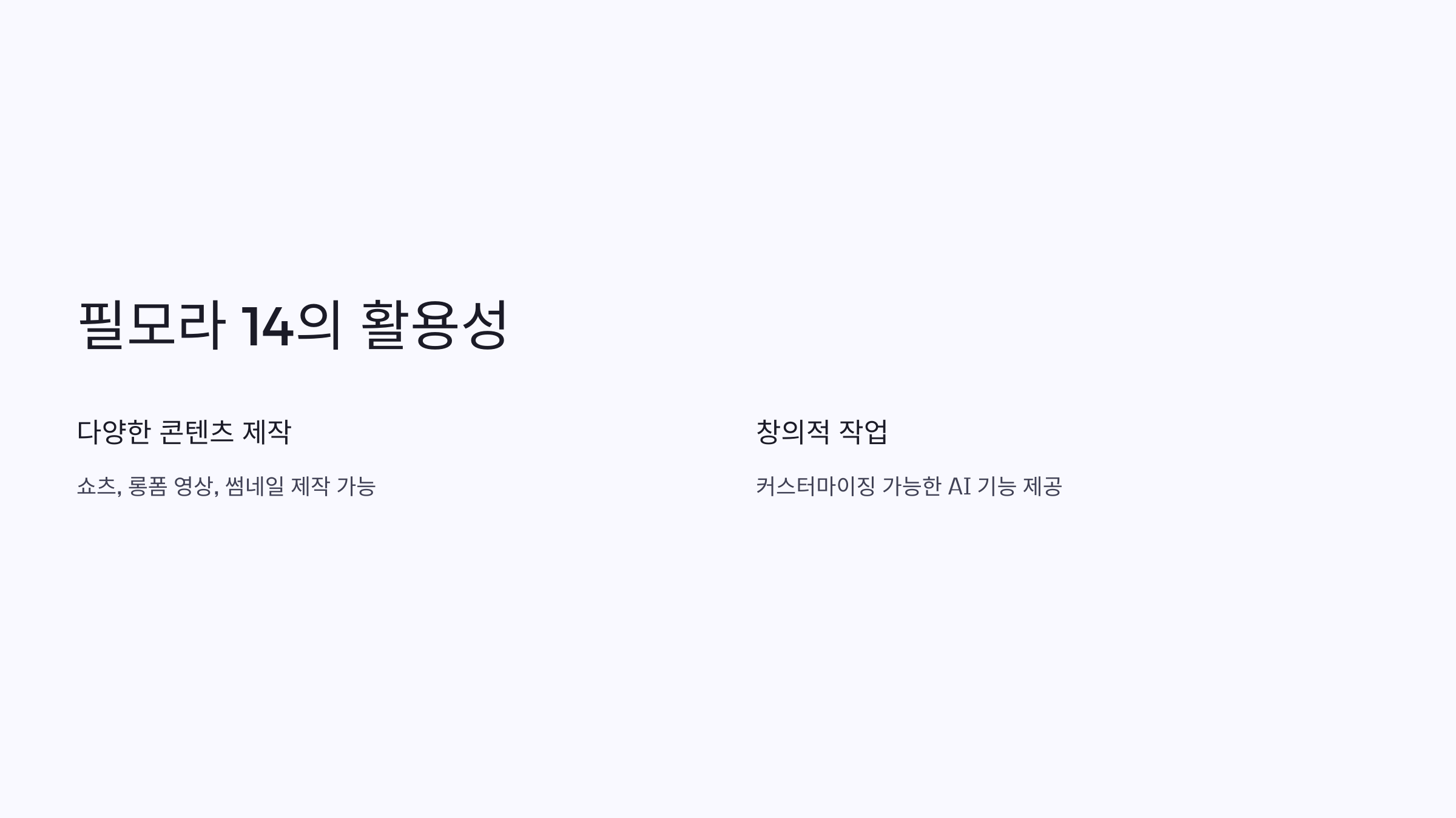 - 유튜브 쇼츠뿐만 아니라 롱폼 영상 제작에도 적합.