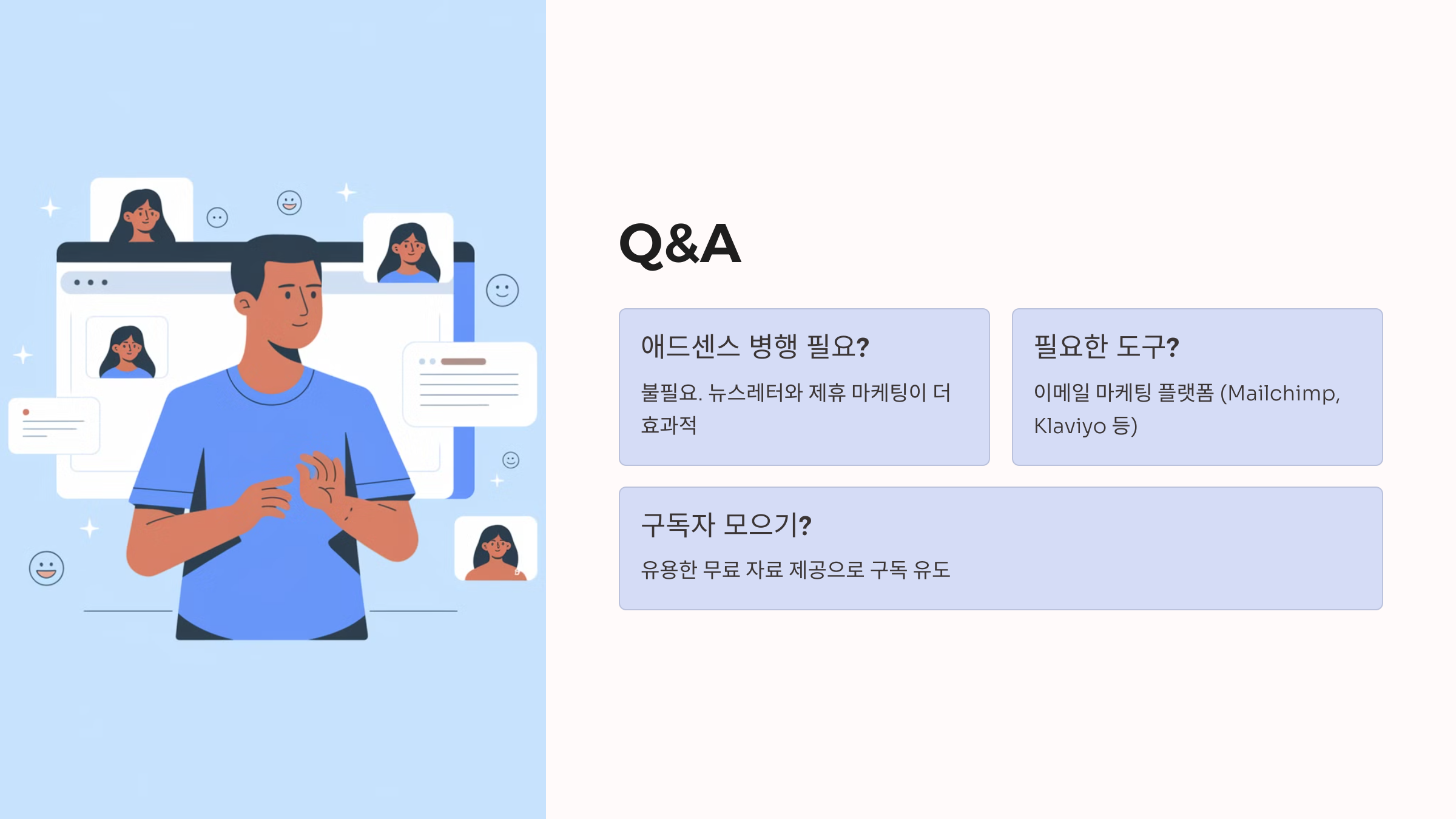 A3: 유용한 무료 자료(PDF, 템플릿) 제공으로 구독을 유도하세요.