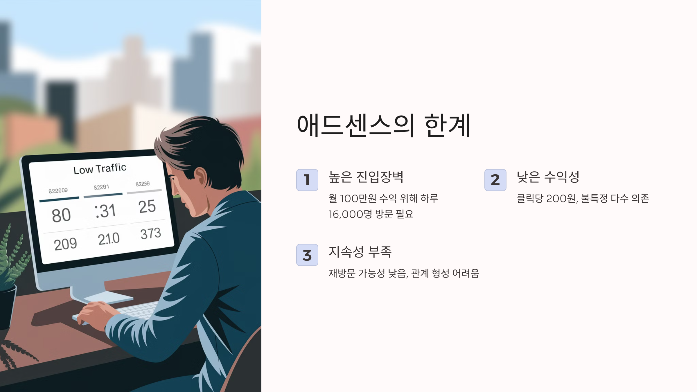 블로그로 애드센스를 시작해 하루 16,000명의 방문자를 모아야 월 100만 원을 벌 수 있다는 현실, 정말 효율적일까요?